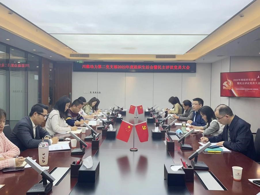 2023年3月10日上午,川能动力第二党支部召开2022年度组织生活会暨民主评议党员大会,川能动力党委书记、董事长何连俊,党委委员、财务总监王大海,副总经理毛明珠,董事会秘书欧健成以普通党员身份参加。第二党支部书记樊磊主持会议,支部正式党员、预备党员参加了会议。